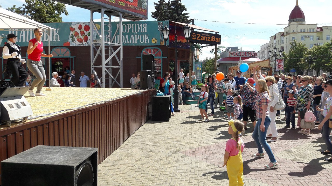 На сооруженной сцене перед зрителями разворачивался настоящий концерт с участием детских творческих коллективов, увлекательного флэшмоба в стиле Зумба, шоу мыльных пузырей. Конечно же, не обошлось без ценных подарков: самым активным танцорам дня вручались памятные сувениры от партнеров праздника.
