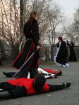Вот и в этот раз к приезду фолк-группы Тролль Гнет Ель наши челябинские ролевики разыграли замечательную игру. И обыграли они как раз страшный период гонения ведьм, и продемонстрировали нам сожжение невинной девушки.