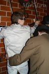 Стоит начать отчет уже с момента ожидания прохода в клуб, когда заскучавших было посетителей застало врасплох эффектное fire-show в исполнении двух молодых людей в блестящих костюмах. Зрители замерли в восхищении и не сразу заметили, как на крыше появилось несколько подозрительных типов в длинных пальто и старомодных шляпах. Оказалось, что это тоже часть маленького спектакля, устроенного для гостей бала. А подозрительные типы – это сыщики в поисках Фантомаса. На протяжении всей ночи они перемещались по клубу с загадочными лицами, теряясь в толпе. Создавалось ощущение попадания в старое кино…