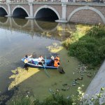 Уборкой набережной дело не ограничилось - группа добровольцев погрузилась в лодки и с помощью сачков и сеток стала отлавливать мусор из воды. И здесь участников экологической акции ожидали интересные находки. Из Миасса, кроме обычного бытового мусора, выловили три пиратские рыболовные сети с рыбой, самодельный деревянный кораблик с мачтой и железный каркас от матраса.