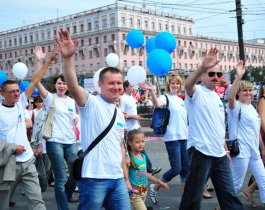 Идея «Открытого вернисажа» в динамичной форме отразилась на праздничной платформе компании «Балтика» в традиционном шествии, посвященном Дню города. «Танцующие художники», которые готовы раскрасить молодой город новыми красками и приобщить горожан к миру искусства, на глазах у горожан создали живописную картину – поздравление Челябинска с Днем рождения. Картина не просто появлялась на огромном холсте, ее создание представляло собой выразительный импровизированный танец. Оригинальным дополнением стали сами «краски» - это танцоры в комбинезонах всех цветов радуги.