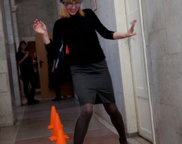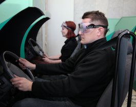 Участники круглого стола испытали на себе «прелести» нетрезвого вождения: сначала попробовали передвигаться в специальных очках, имитирующих состояние опьянения, а затем, в той же «экипировке» прошли тест на виртуальном симуляторе дорожного движения. Результат был предсказуем – безаварийное вождение в «нетрезвом состоянии» оказалось невозможным.