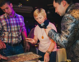 Приглашение принять участие в вечере получили лучшие журналисты, блогеры и рестораторы Челябинска. Несмотря на холодную погоду за окном, в ресторане организаторам удалось создать настоящую интернациональную атмосферу. Праздник начался с дегустации блюд, приготовленных шеф-поваром и викторины, посвященной знанию трёх стран - Англии, США и Германии. Через несколько минут проявившие себя «эрудиты» были приглашены для участия в одной из главных интриг прошедшего вечера – международном кулинарном поединке. ![]()