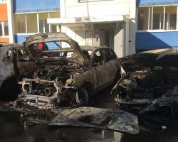 Сообщение о возгорании автомобилей у дома №14 на улице Скульптора Головницкого поступило в МЧС в 4:52. Огнеборцы прибыли через шесть минут и за три минуты ликвидировали открытое горение. «Огонь полностью уничтожил три автомобиля: Volkswagen Touareg, KIA Sorento и Mercedes, – рассказали в пресс-службе. – Повреждены еще два авто: KIA Spectra и Audi 80».