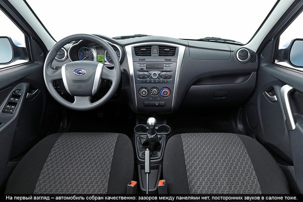 За один день оценить потенциальную надежность машины невозможно, но на первый взгляд автомобиль, в котором, как выразился один из коллег, «очень много Granta внутри», собран качественно: зазоров между панелями нет, посторонних звуков в салоне тоже. С ходу сложно найти параметры, по которым с точки зрения сборки, on-DO уступал бы более дорогим Skoda Rapid или Volkswagen Polo Sedan, например. Беспокойство вызывают разве что дворники: они работают вразнобой и со временем вполне могут совсем разболтаться.