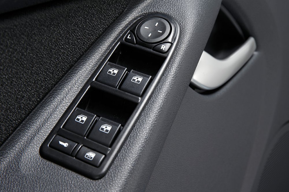 Мрачный в целом салон, подавляющее большинство элементов в котором выкрашено в черный цвет, вполне эргономичен. Приборы читаются хорошо (правда, когда я настроил руль и сиденья под себя, руль частично перекрывал спидометр - такая же проблема, к слову, была и у моего коллеги по экипажу), управление аудиосистемой и климатической установкой удобное и интуитивно понятное. Обзорность хорошая, боковые зеркала большие, блок управления ими расположен на двери (в комплектации Dream он отличается по форме), кнопки на нем идеально подогнаны друг к другу, но очень тугие.