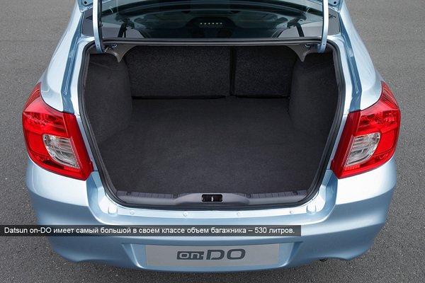 Скорее всего, такая форма багажного пространства -это оборотная сторона борьбы за шумоизоляцию, уровень которой не сопоставим ни с одной российской машиной. Чтобы водителя не беспокоили посторонние звуки, инженеры компании установили звукоизолирующие элементы на полу в задней части салона, в багажнике и на моторном щите. Кроме того в разных зонах кузова были расположены заглушки из вспененного полиуретана, а в задние колесные арки установлены прокладки, поглощающие дорожные шумы. В результате шумоизоляции колесных арок в on-DO могут позавидовать многие гораздо более дорогие иномарки. Хотя бы Mazda, например. Нет и никаких вибраций на холостом ходу. Для этого японцы изменили калибровку двигателя, жесткость выпускной системы и оптимизировали точки ее крепления.