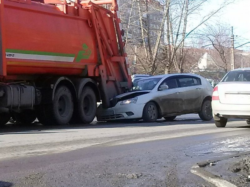Авария случилась вчера на проспекте Гагарина. Легковушка залетела под «Камаз». Как водитель умудрился не заметить «махину», остается загадкой