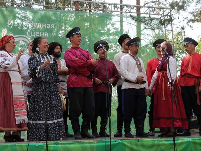 Концертная программа проходила на пяти сценах - "малахитовой", "агатовой", "бирюзовой", "изумрудной" и "яшмовой". Невозможно было побывать на всех площадках, увидеть и услышать всех артистов.