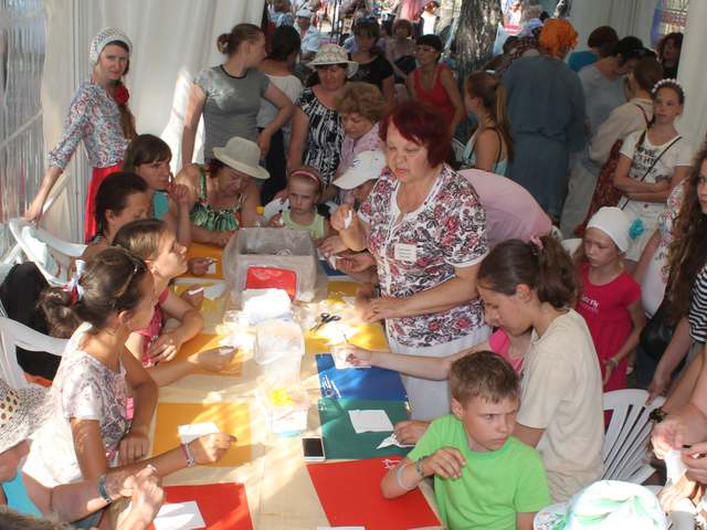 Радовала глаз "Мастеровая слобода". В этом году на ней были представлены кузнечный участок, монетный двор, художественная галерея, кукольники, гончары, ювелиры, ткачи, мастера по художественной обработке камня и стекла, шитью и войлоковалянию, скульпторы, работающие с металлом и деревом.