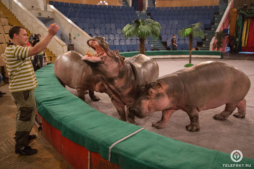 В Челябинск прибыло цирковое шоу «Гиппопотамус». В минувшие выходные прошли первые преставления. Под руководством Людмилы и Тофика Ахундовых африканские гиппопотамы, каждый весом целую тонну, с ловкостью взбираются на тумбы, перепрыгивают друг друга, танцуют вальс. Наш фотокорреспондент побывал на репетиции бегемотов и увидел, как милахи принимают душ. В них невозможно не влюбиться. А на арене цирка они – настоящие звезды. Хоть толстоваты слегка, но ведь мы знаем, что есть полнота, которая не портит.