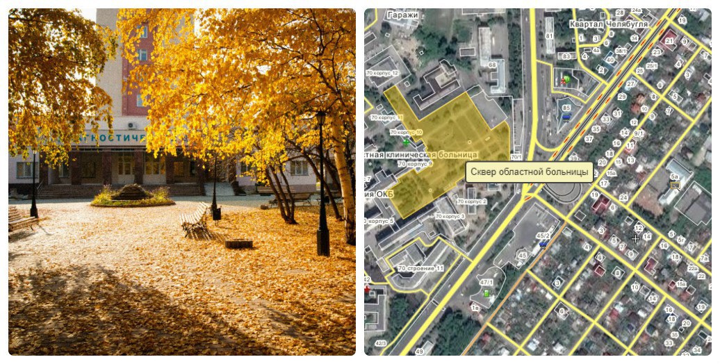 Менее возвышенное, но не менее живописное место — сквер челябинской областной больницы. Место тихое, умиротворенное, сразу чувствуется покой и уют осени. Так что если хотите мечтательно-задумчивых фотографий — вам туда.