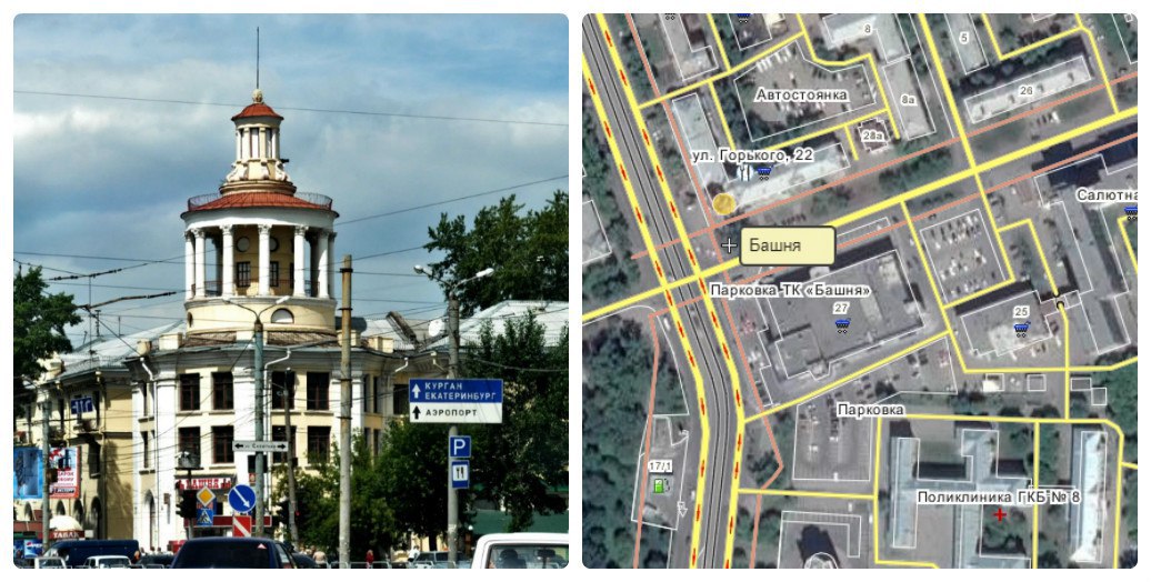 А вот осенняя жемчужина ЧТЗ — дом-башня у одноименного торгового комплекса. Снаружи она смотрится еще куда ни шло, а вот со стороны двора — невероятно мрачно. Хотите осеннюю фотосессию, как будто вы в Питере, идите во двор у дома-башни. Только газовый баллончик с собой прихватите.