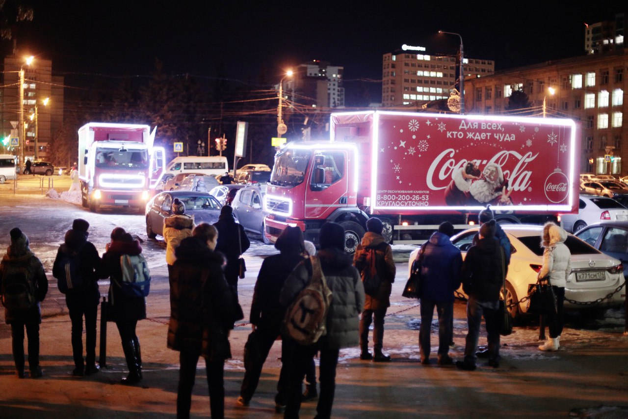 Вечером 20 декабря по Челябинску проехались легендарные грузовики Coca-Cola. Деды Морозы побывали в спецшколе для трудных детей и устроили танцы возле Южно-Уральского госуниверситета. Правда, по словам очевидцев, в этом году караван «похудел» и состоял всего из двух нарядных фургонов.