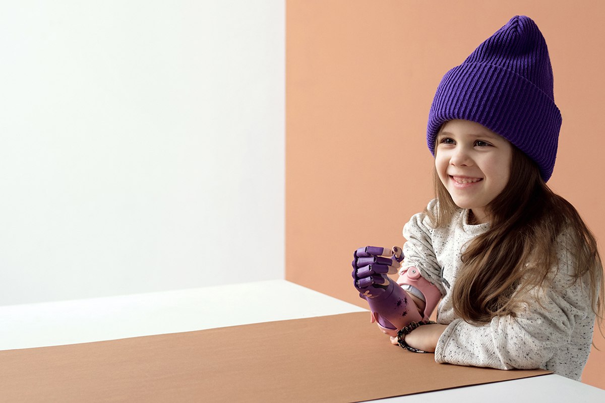 Когда отправляли размеры, можно было указать цвет протеза. Алиса заявила, что хочет розово-фиолетовую руку. Протез Алиса получила в мае прошлого года.
