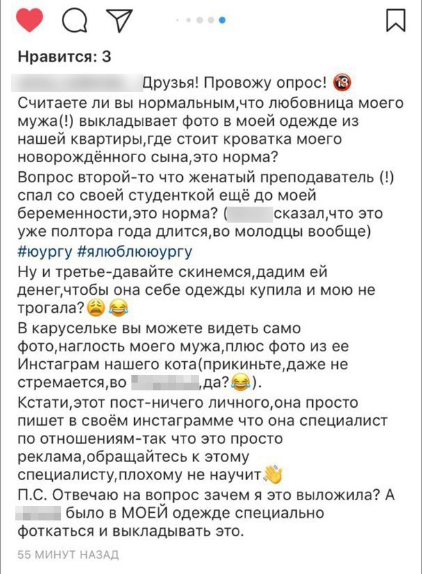 Разразился скандал. Обманутая жена выложила пост в соцсетях.