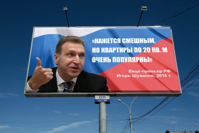 А кто не хочет идти в бизнес, для того придумали квартиры площадью 20 кв. м, которые насмешили бывшего вице-премьера Игоря Шувалова.