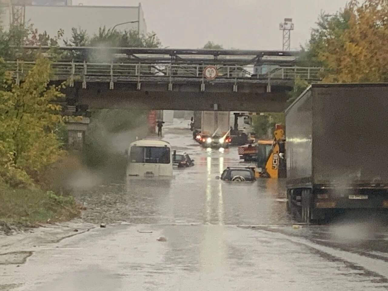 В Челябинске автобус с пассажирами застрял в огромной луже в Ленинском районе. Выбраться из затонувшего транспорта людям помогли сотрудники муниципального учреждения «Поисково-спасательная служба на водных объектах» (ПССВО).