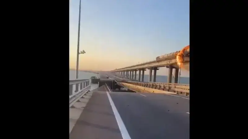 При этом на опубликованных в соцсетях фото и видео заметно, что часть автомобильного моста обрушилась.