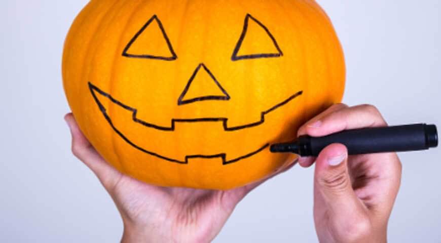 Возьмите обычный маркер, его хорошо видно на поверхности овоща. Классическая мордочка Джека — это треугольные глаза и зубастая ухмылка. Но вы, конечно, можете проявить фантазию и наделить вашего персонажа уникальной внешностью.