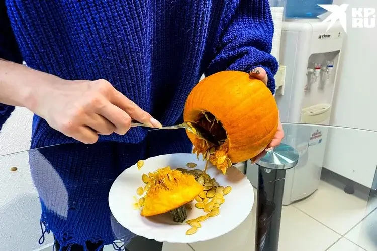 Аккуратно срежьте макушку тыквы, она должна быть круглой и ровной. Впоследствии этой шапочкой накроем готового Джека. Через отверстие удалите мякоть и семена, для этого лучше всего использовать ложку с заостренными краями. Другой вариант: аккуратно надрезать мякоть со всех сторон, а затем выскоблить столовой ложкой. Сильно не усердствуйте — тонкие стенки тыквы не нужны по всей площади. Выберите сторону, на которой будете вырезать лицо Джека, к ней стоит отнестись с особым вниманием. С этой стороны выскоблите мякоть как следует, чем тоньше будет поверхность тыквы, тем проще потом вырезать.