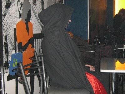 Что хотелось бы сказать по поводу самой программы. Единственный, пожалуй, ее недостаток заключается в том, что уже буквально часа через два все позабыли, что все-таки это ночь Halloween. Единственное, что было от праздника – это конкурс костюмов. То есть в перерывах между выступлениями ди-джеев и групп вышел ведущий вечера и объявил конкурс костюмов. Самой выделяющейся группой из всех оказалась бригада в белых халатах. Остальные как-то оказались не у дел. Выбор был произведен моментально, девушке-хирургу был вручен музыкальный диск. На этом, собственно, все и закончилось. Продолжились танцы.