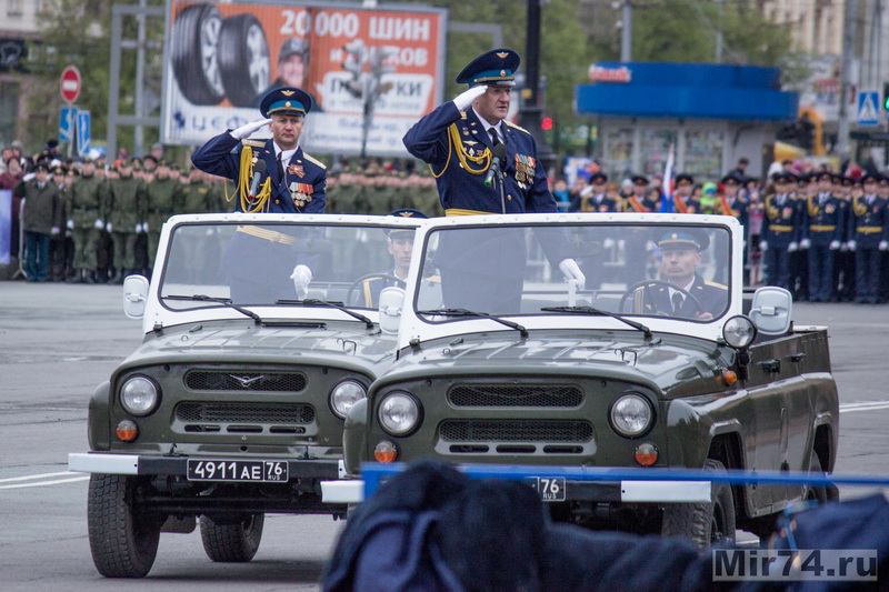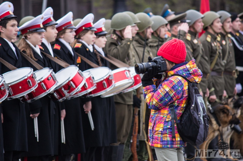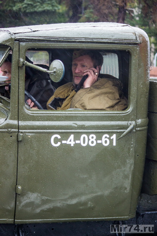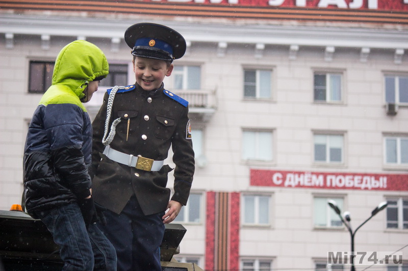 Впервые за много лет Парад Победы в Челябинске проходил под проливным дождем. Участники парада, а это около двух тысяч человек, стояли все это время под дождем в одних кителях, а затем, невзирая на дождь и ветер, прошли торжественным маршем по площади Революции. В параде участвовали военнослужащие челябинского гарнизона, полиция, МЧС, спасатели, представители других силовых структур, а также реконструированные взводы времен Великой Отечественной войны.
