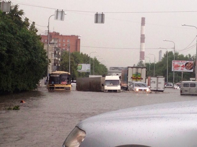 В частности, затоплена Тополиная аллея. Люди вынуждены бросать свои машины на дороге.