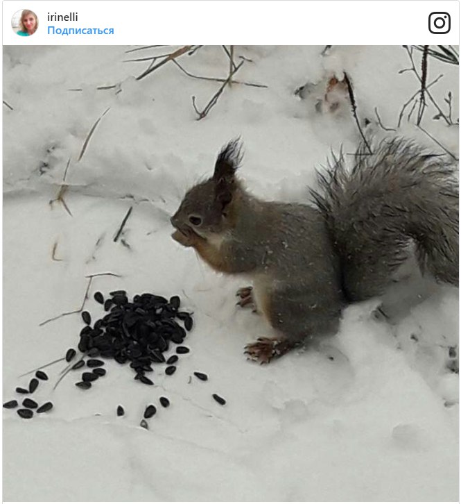 Белки в челябинских парках уже сменили рыжую «расцветку» на зимний серый вариант. Правда, к мокрому снегу и скользкому насту из-за него они оказались не так готовы.