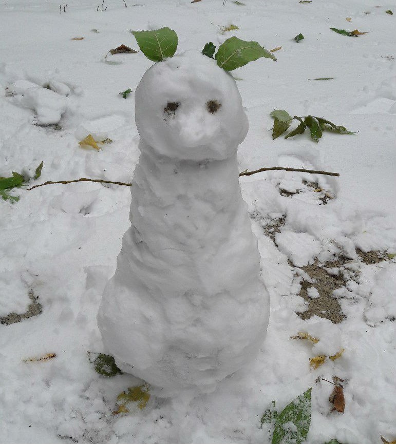 Первые сугробы – повод слепить снеговика, решили челябинцы и проявили фантазию. И не беда, что снеговики пока маленькие. Будем считать это тренировкой к предстоящей зиме.